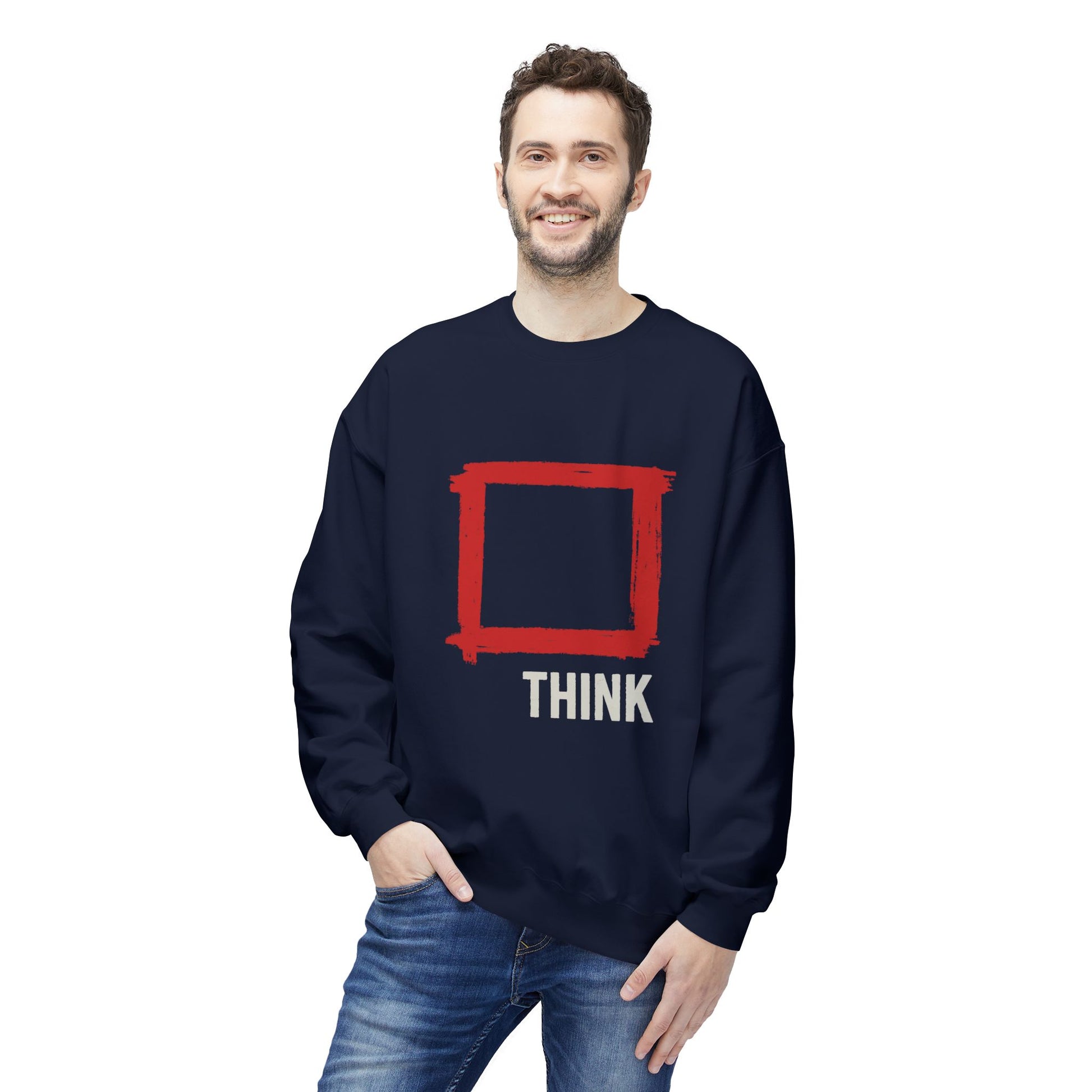 🟥 THINK (outside the Box) – Statement Crewneck Sweater